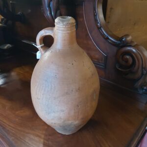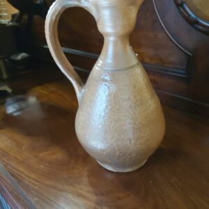 - Antieke zoutgeglazuurde aardewerken kruik Materiaal: aardewerk Leeftijd: ca. 1850 Herkomst: Duitsland Afmetingen: Hoogte: 38 cm.