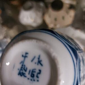 - 2 Japanse sake-drinkkommetjes. Materiaal: porselein Leeftijd: 1900-1920 Herkomst: Japan Afmetingen: Hoogte: 3. cm. Doorsnee: 5,5 cm