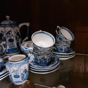 - Uitgebreid lange Lijs servies bestaande uit: koffie-/theepot, 12 kop en schotels, melkkan, suikerschaal en lepelvaasje. Het servies is aan de onderzijde gemerkt met Chinese karakters. Materiaal: porselein Leeftijd: ca. 1920 Herkomst: China