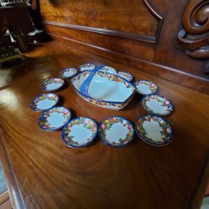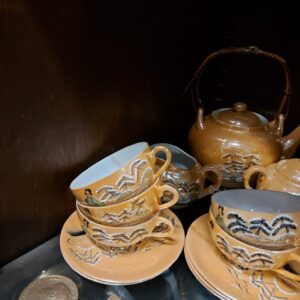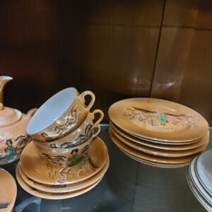 - Uitgebreid en gaaf theeservies bestaande uit: 8 kop en schotels, 8 bordjes, theepot, suikerpot en melkkan. Materiaal: porselein Leeftijd: rond 1930 Herkomst: Japan