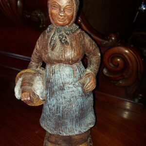 - Eenvoudig niet gesigneerd beeld. Materiaal: gebakken klei. Leeftijd: onbekend Herkomst: onbekend Afmetingen: Hoogte: 38 cm. Breedte: 12 cm. Diepte: 10 cm.