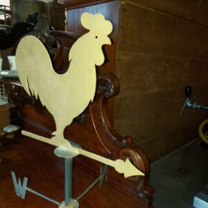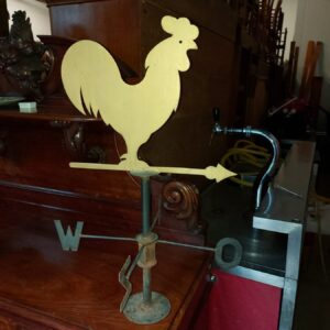 - Weerhaan of windhaan met een haanfiguur. Materiaal: metaal Leeftijd: jaren vijftig Herkomst: Nederland Afmetingen: Hoogte: 70 cm. Breedte: 43 cm. Diepte: 43 cm.