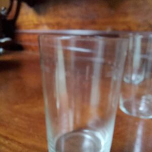 - 2 glazen/mokken met de teksten: Zur Erinnerung en zum Andenken. Materiaal: glas Leeftijd: begin 1900 Herkomst: Duitsland Afmetingen: Hoogte: 10 cm. Doorsnede: 5 cm.