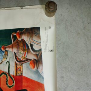 - 4 oude Bijbelse schoolplaten van Bellarminus voorstellende: David en Goliath, het Abrahams offer, een altaar voor Jaweh en Jozef en zijn broers Materiaal: papier op linnen Leeftijd: jaren vijftig Herkomst: Nederland, Bellarminus Afmetingen: Lengte: 60: cm. Breedte: 80 cm.