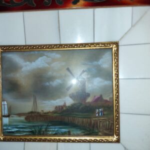 - Fijn geschilderd dat sterk lijkt op 'de molen bij Wijk bij Duurstede' van Jacob van Uisdael. Materiaal: glas en karton Leeftijd: midden 19e eeuw Herkomst: Frankrijk Afmetingen: Breedte: 17,5 cm. Lengte: 15 cm.