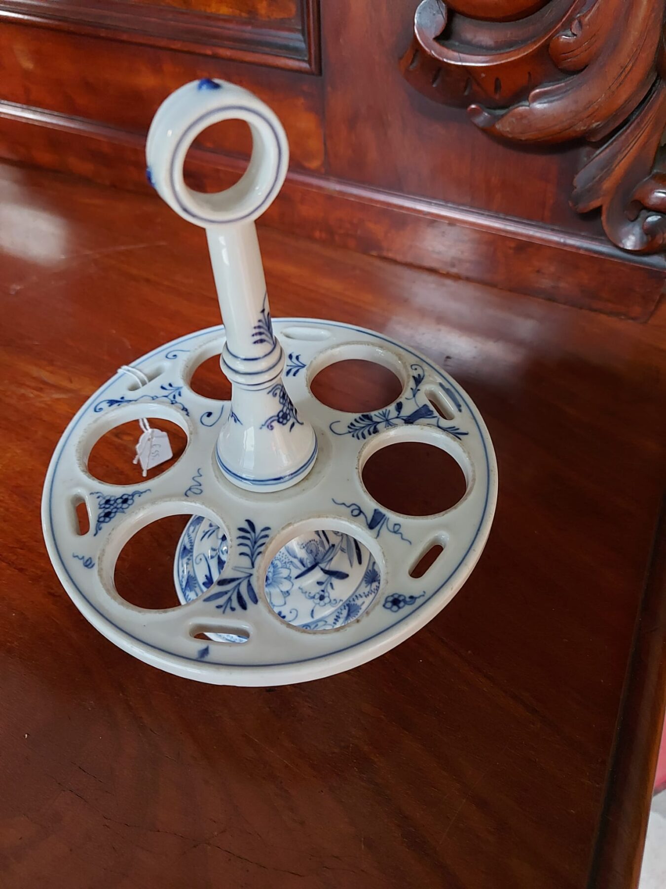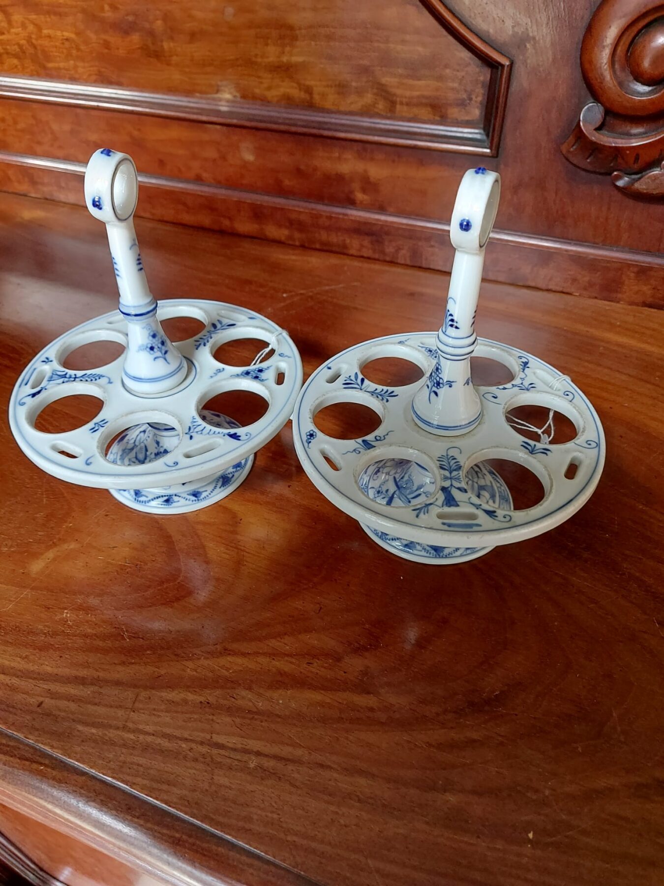 2 eierhouders met het klassieke Zwiebelmuster patroon.