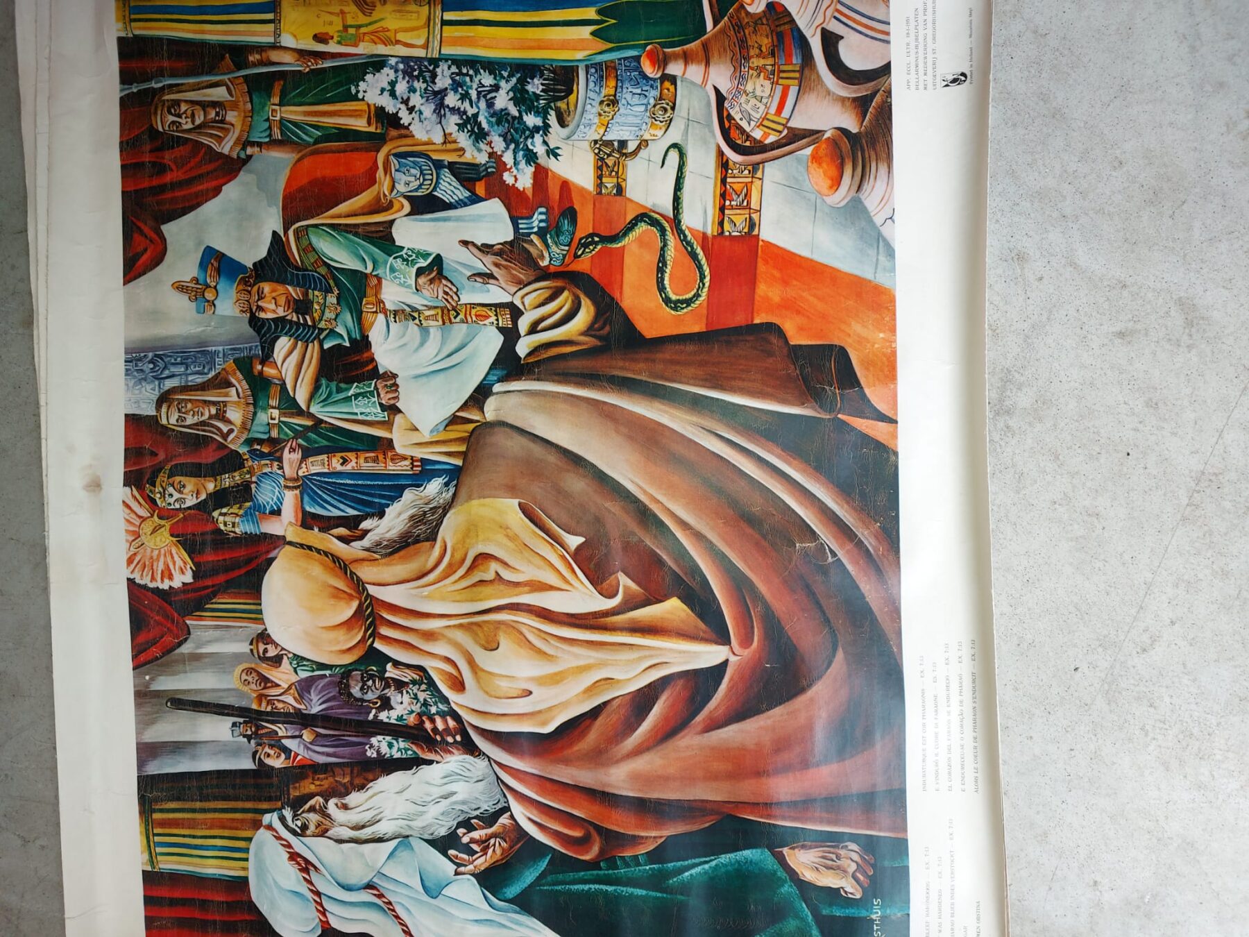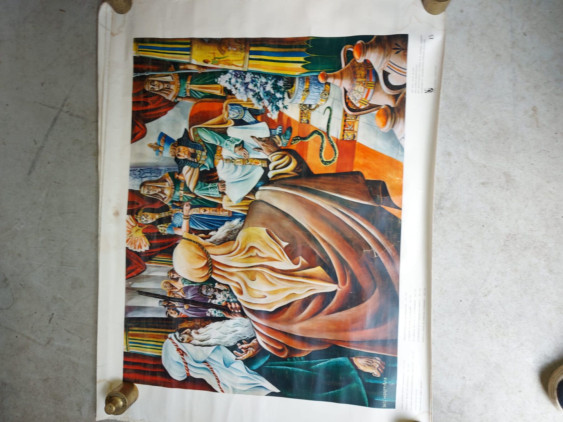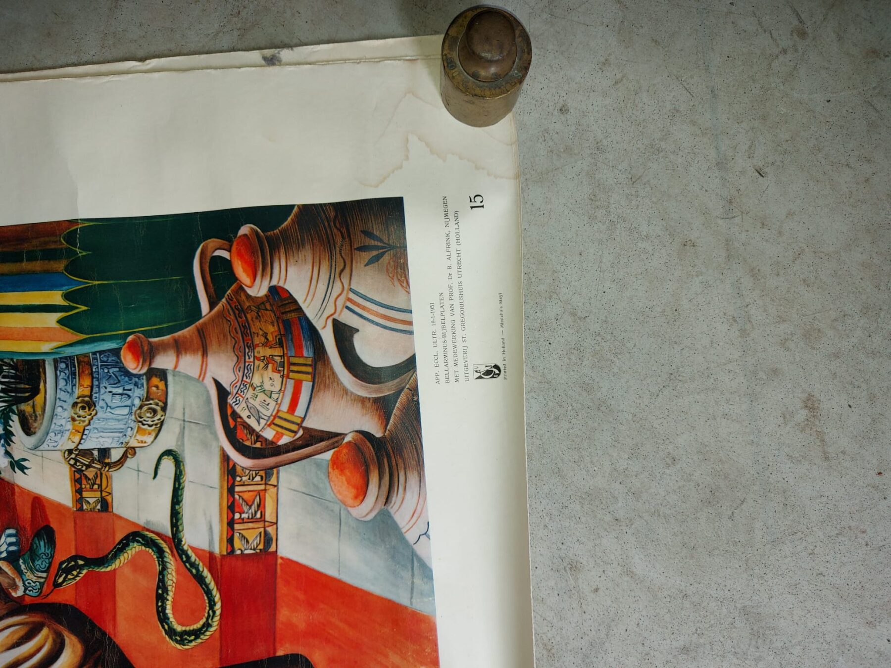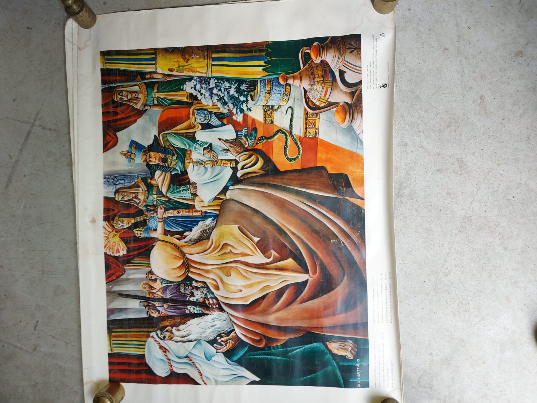 4 oude Bijbelse schoolplaten van Bellarminus  voorstellende: David en Goliath, het Abrahams offer, een altaar voor Jaweh en Jozef en zijn broers