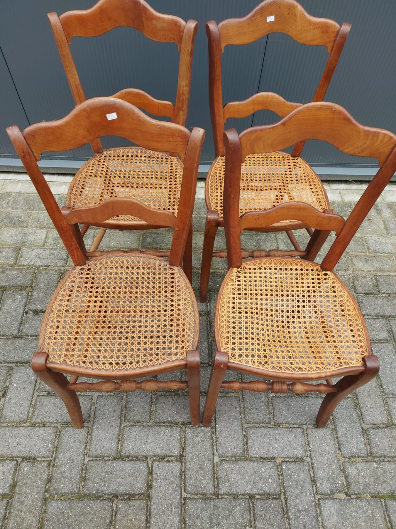 4 stoeltjes met biezen zitting in redelijke staat