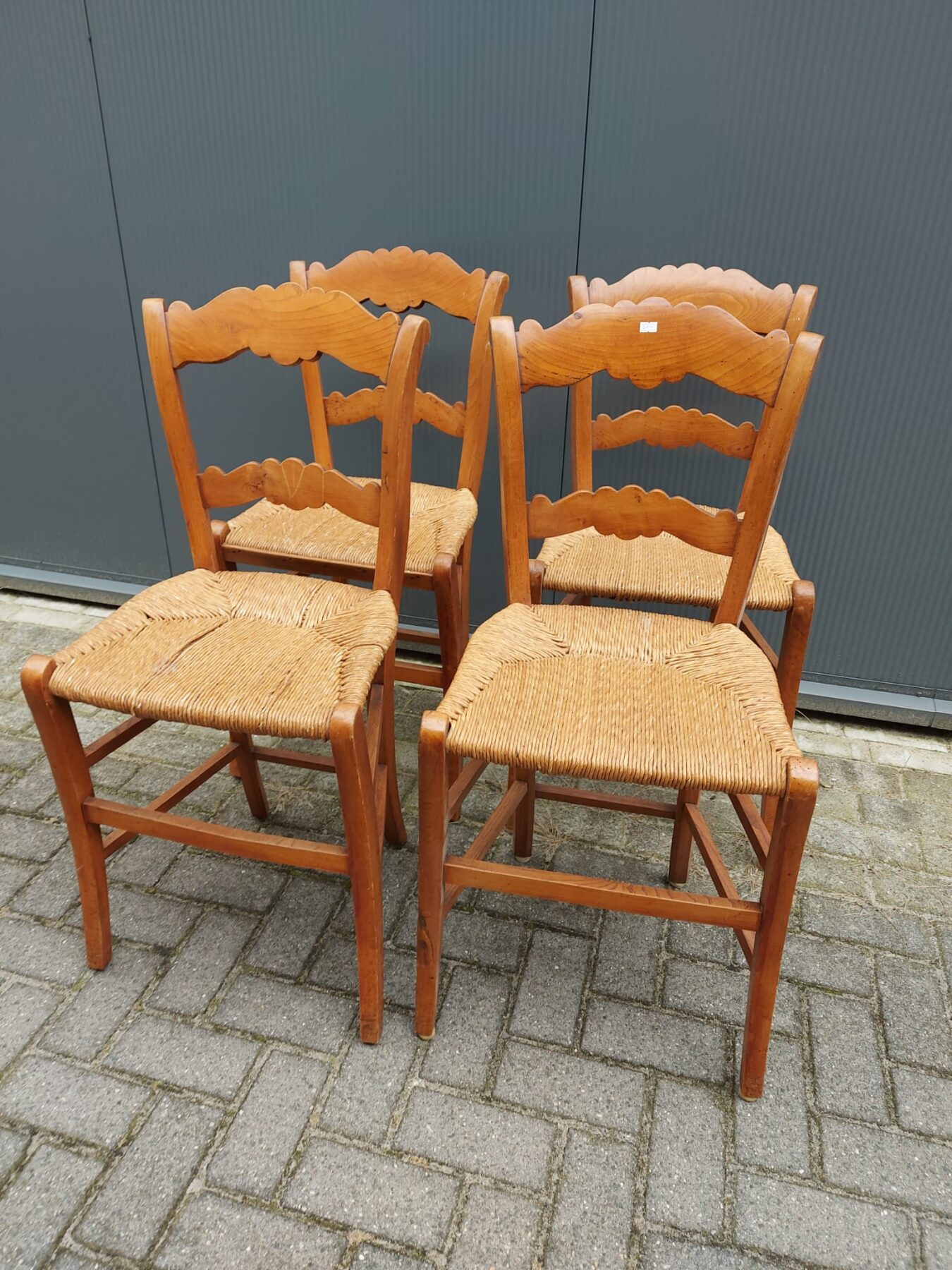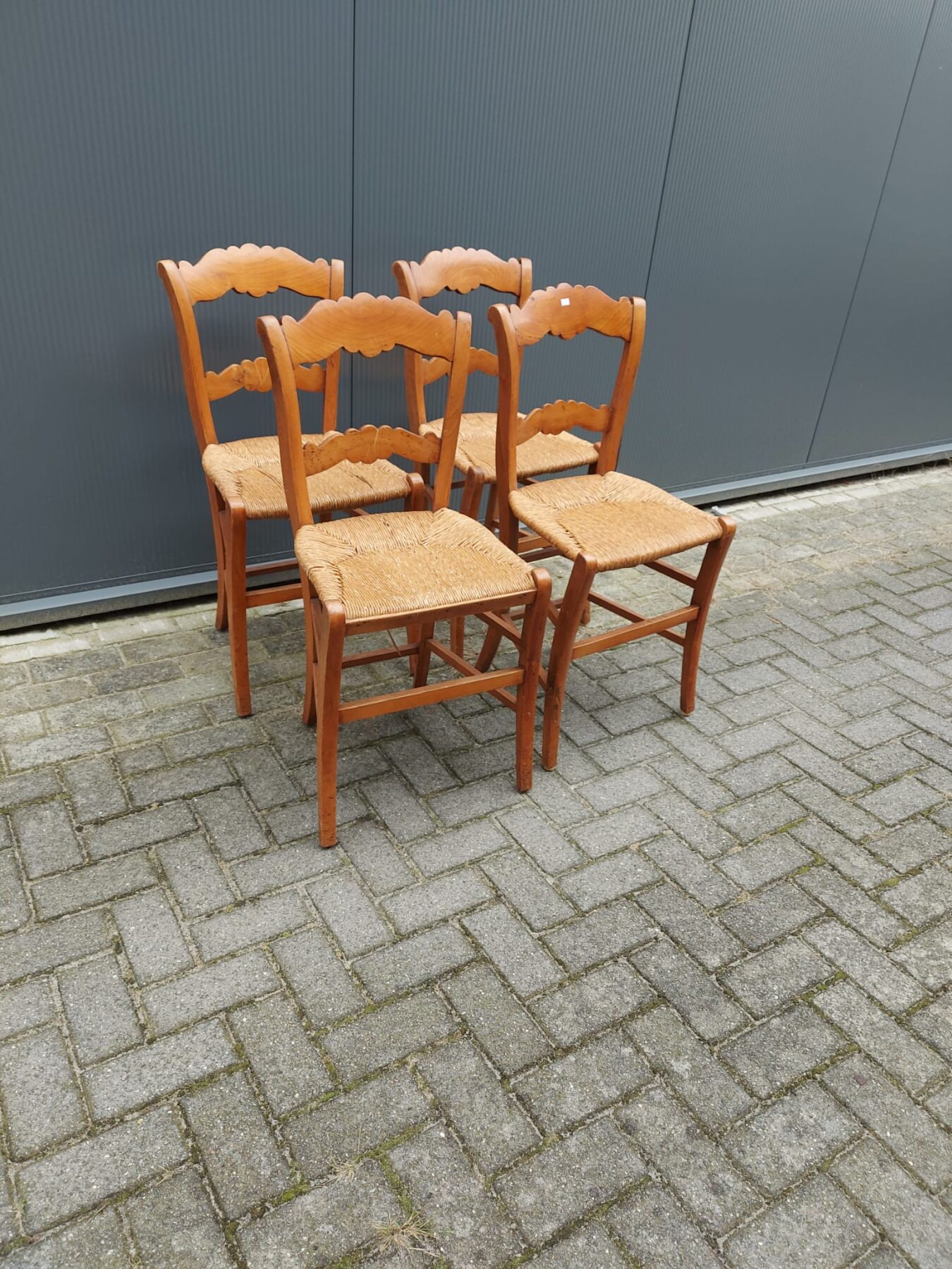 4 stoeltjes met biezen zitting