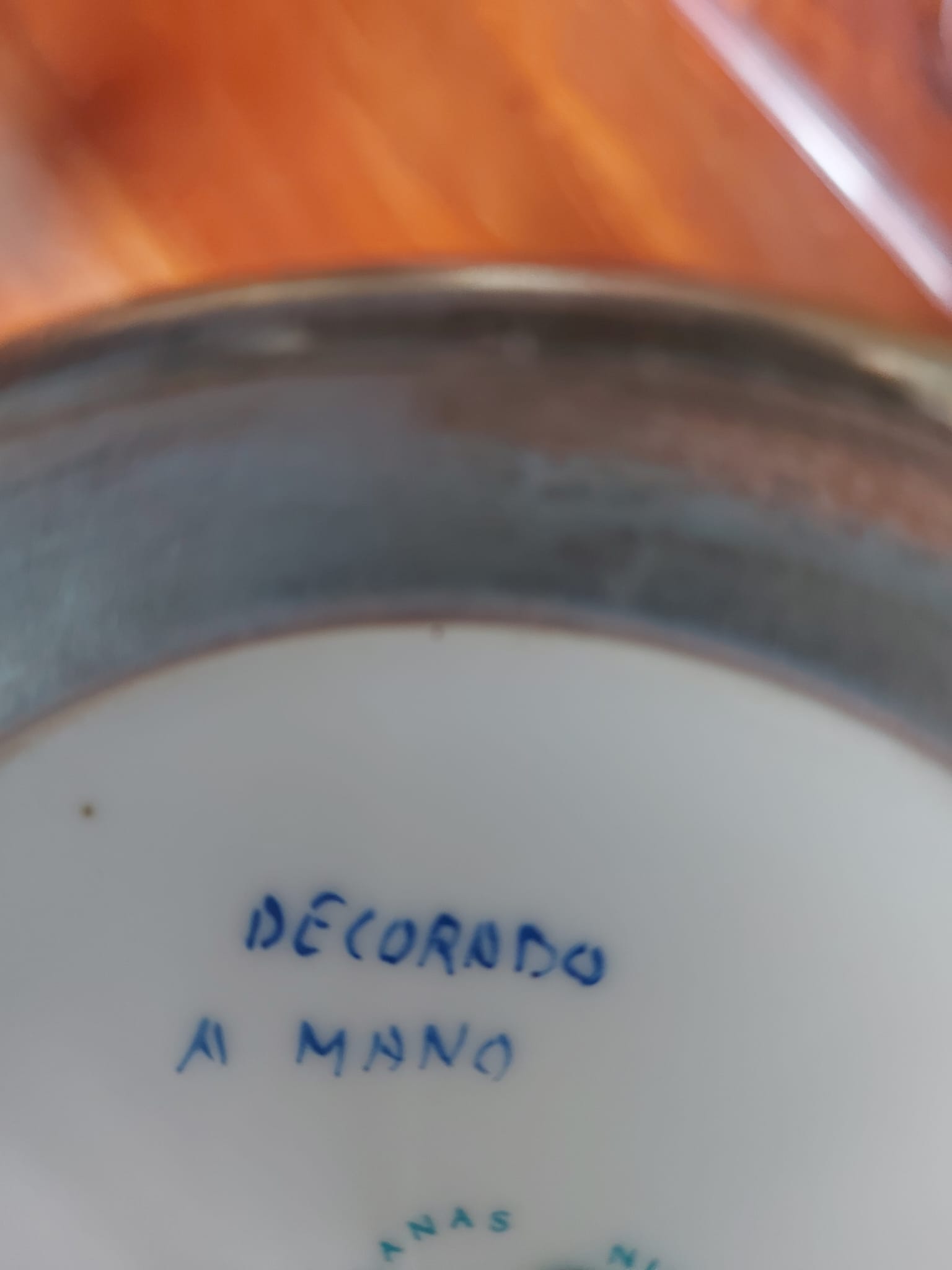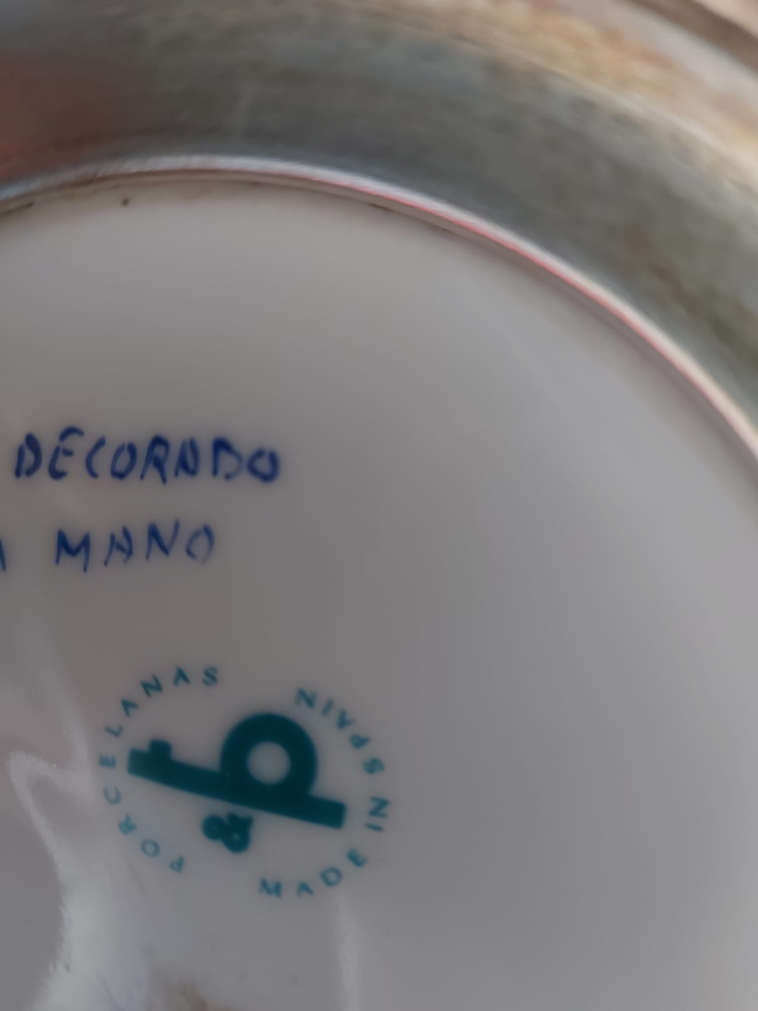 1 grote en 4 kleinere vaasjes met aan de onderzijde de tekst Decorado Mano Porcelano made in Spain