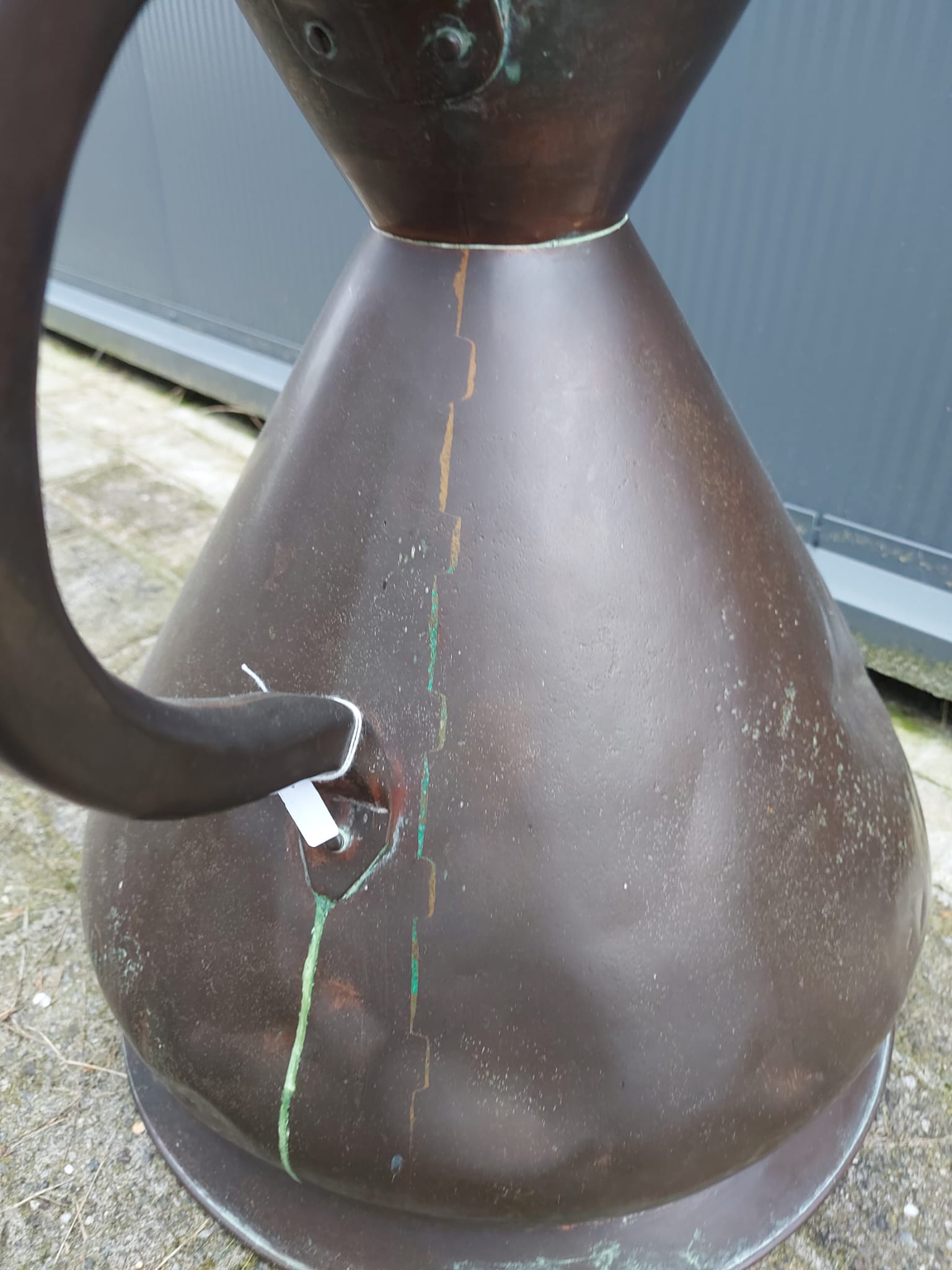 Antieke koperen haystack of harvest jug die werd gebruikt als maatkruik in de 18e en 19e eeuw om cider, bier etc. te meten.