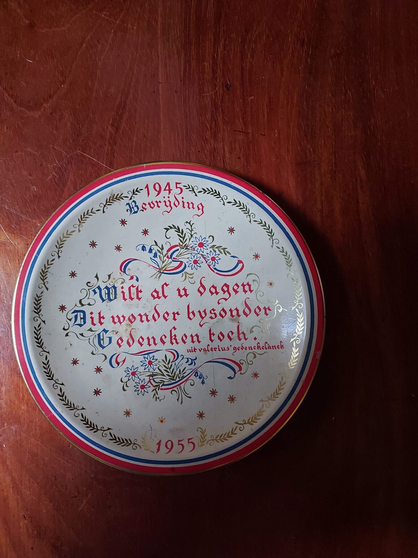 De tekst op het bordje is “1945 Bevrijding Wilt al u dagen Dit wonder bysonders Gedencken toch”.