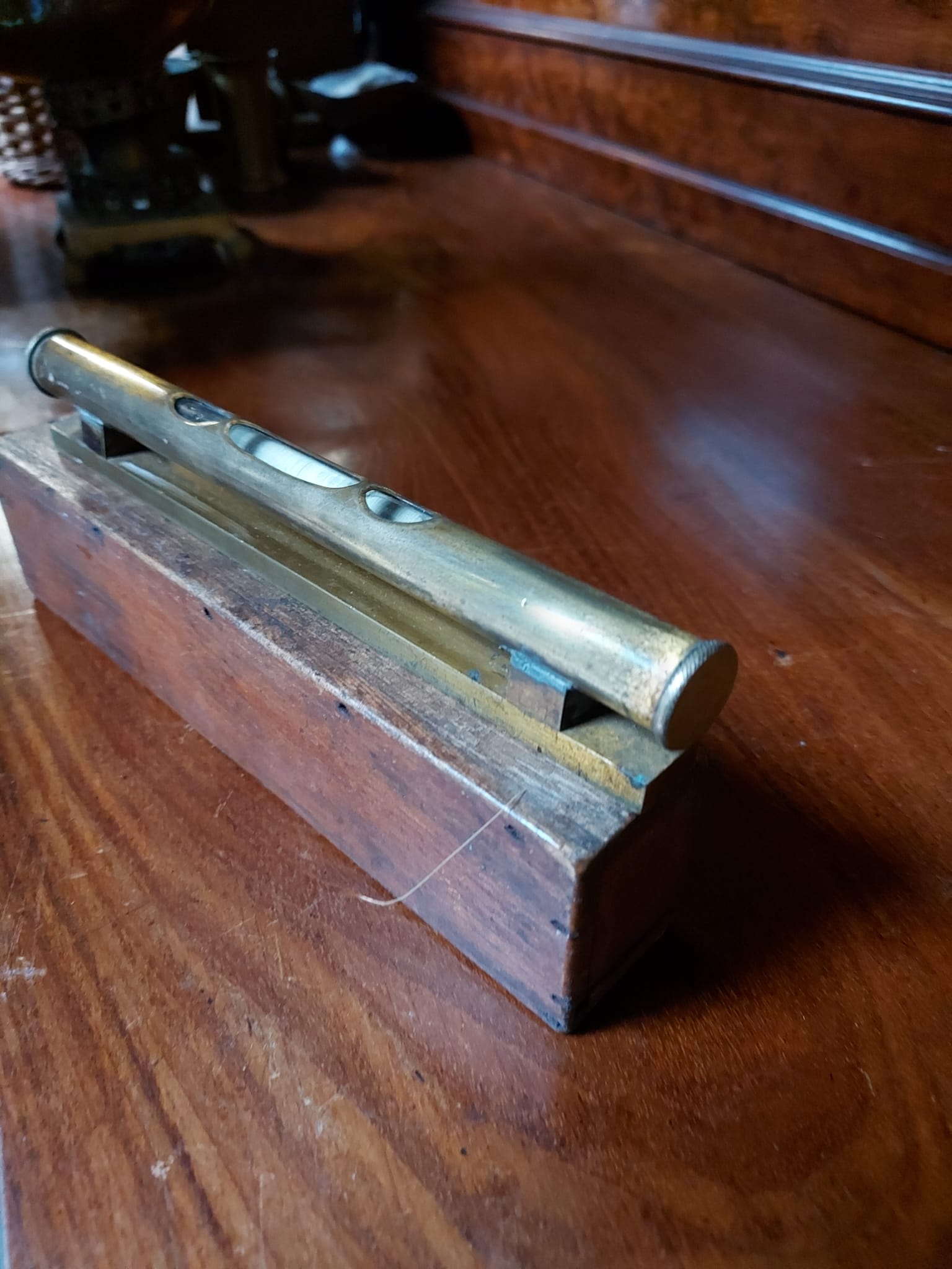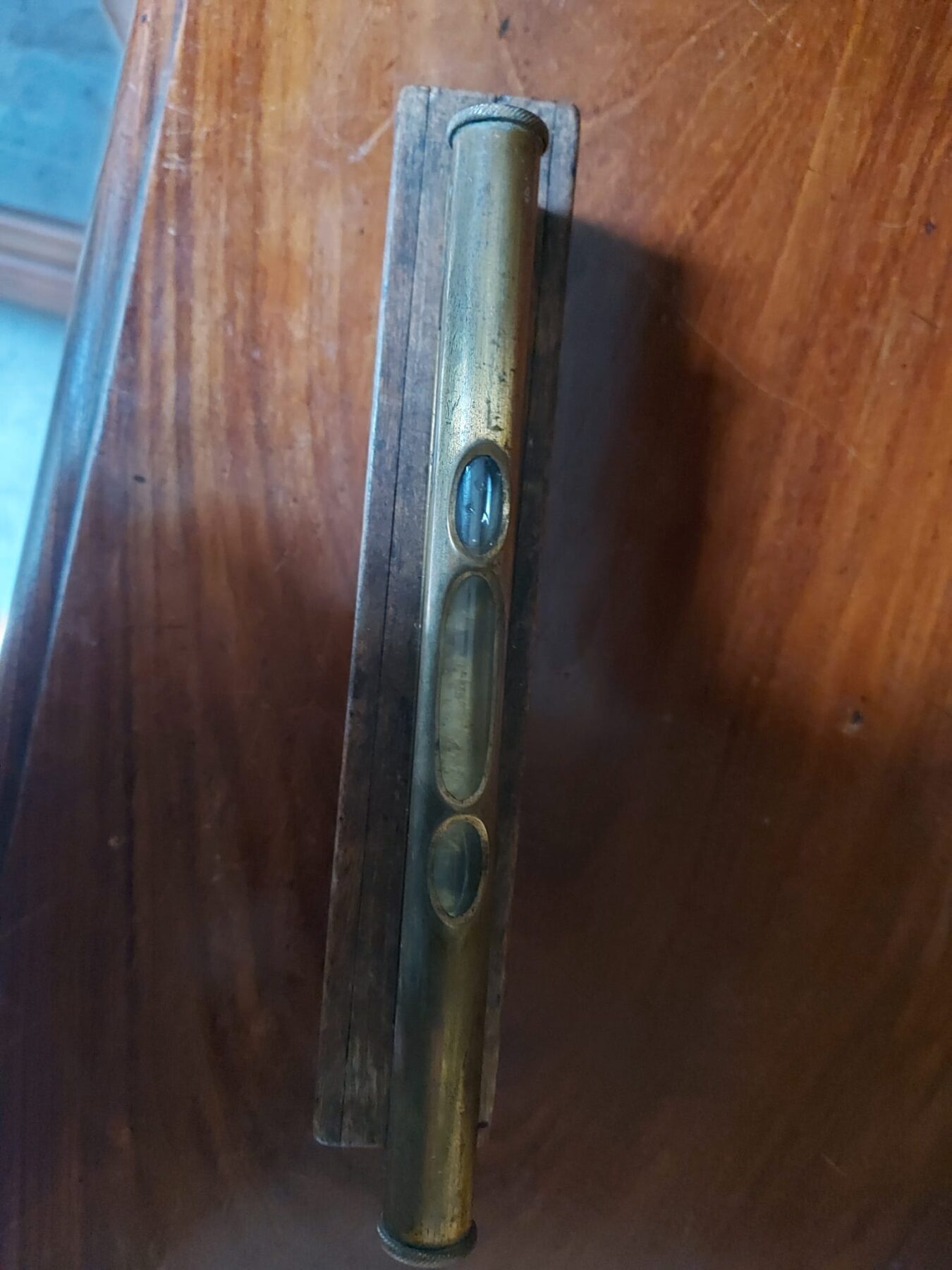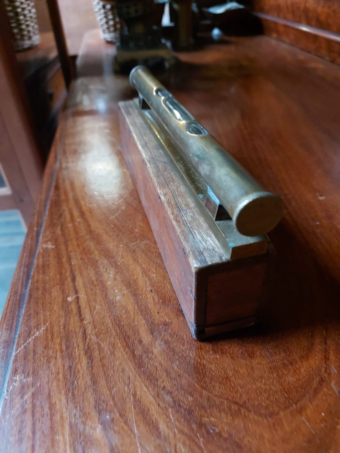 Messing waterpas in bijbehorende houten doos