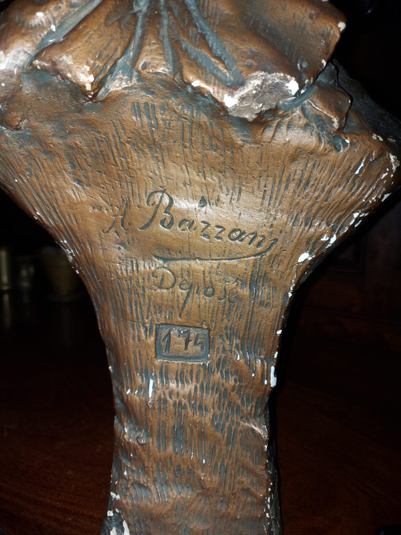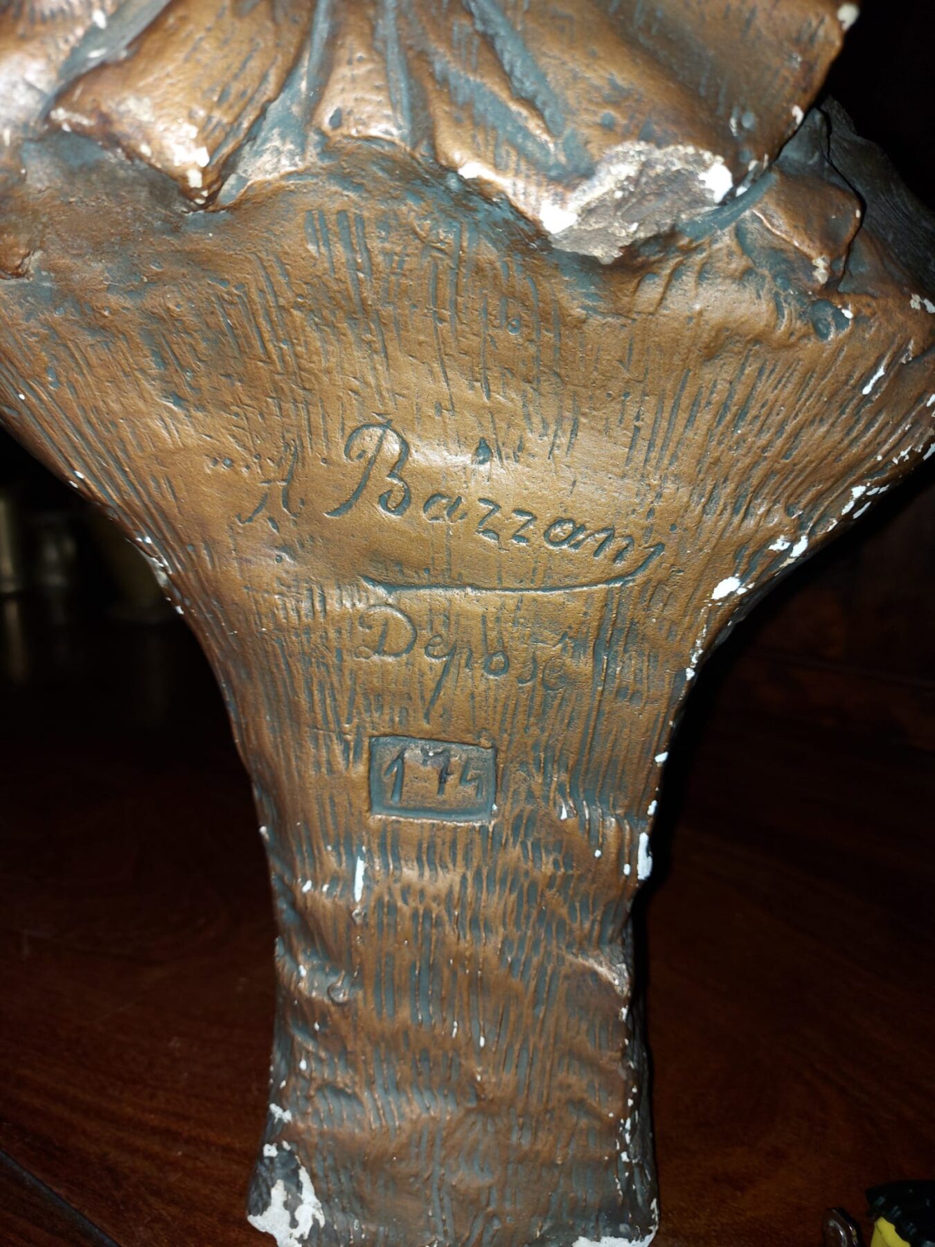 Buste van gips gesigneerd met A. Bazzani Deposo. De buste heeft enkele stootplekken die eenvoudig zijn bij te werken.