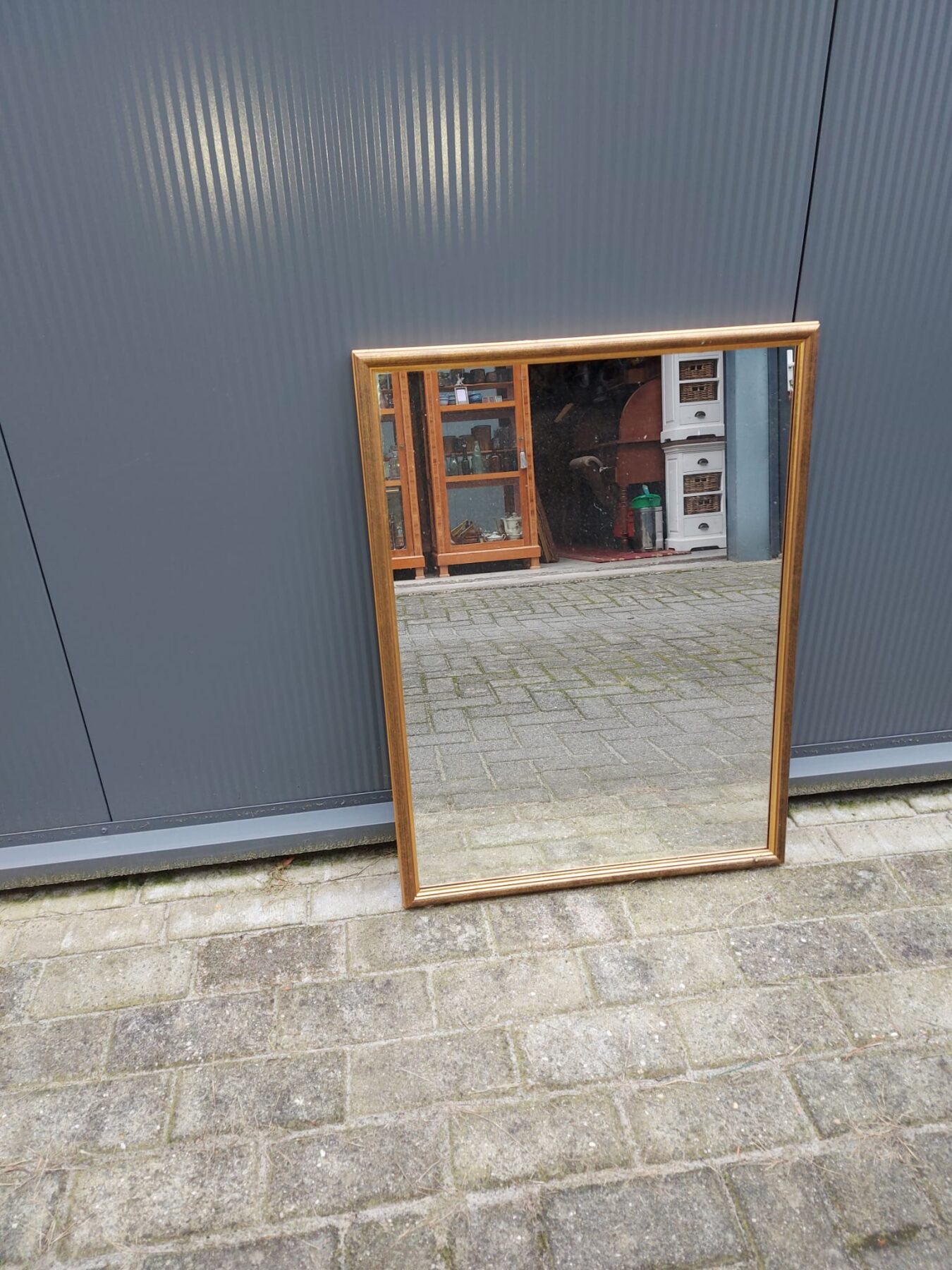 Spiegel met geslepen glas die in de lengte en de breedte opgehangen kan worden.