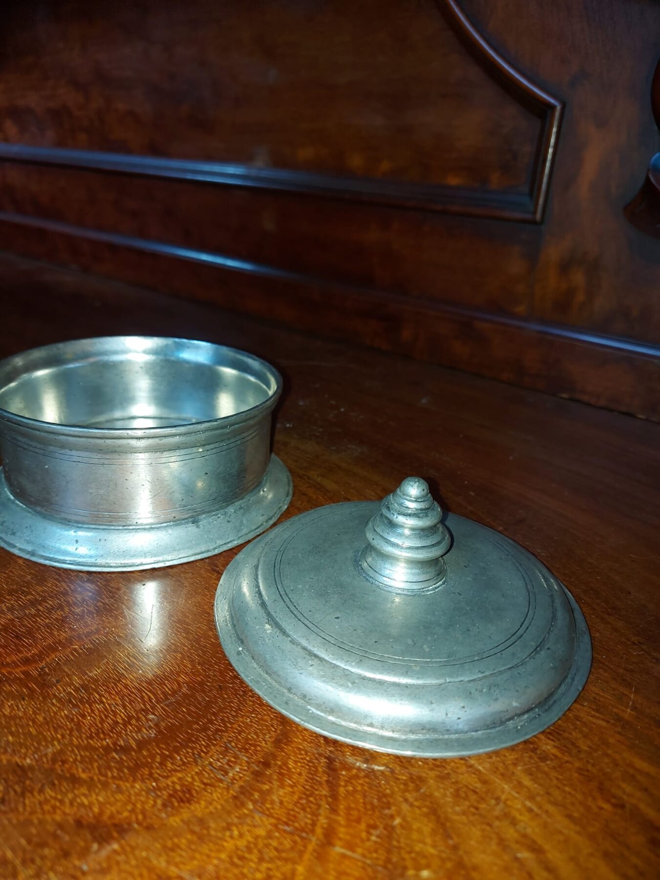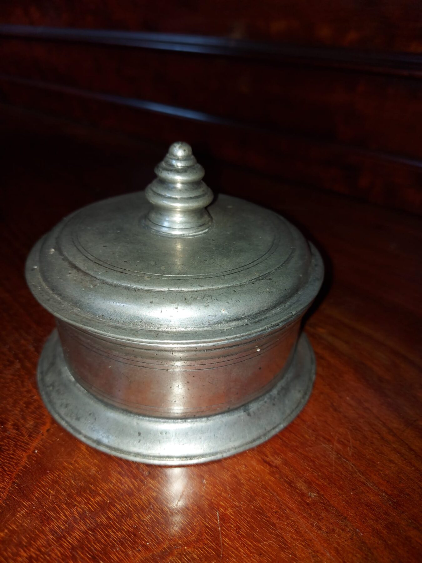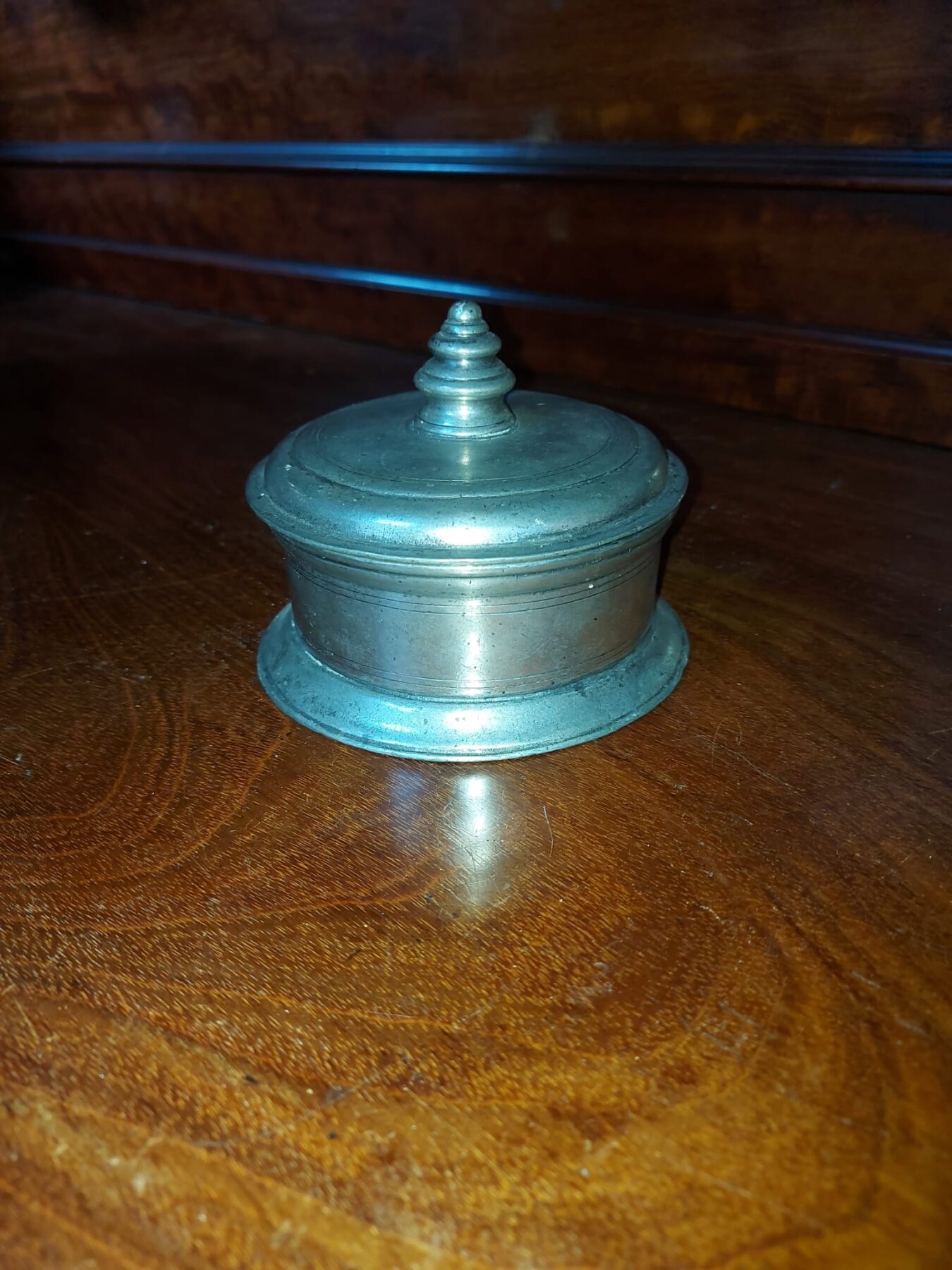 Mooie tinnen doos gemerkt met het Italiaanse Marinoni en een uiltje.