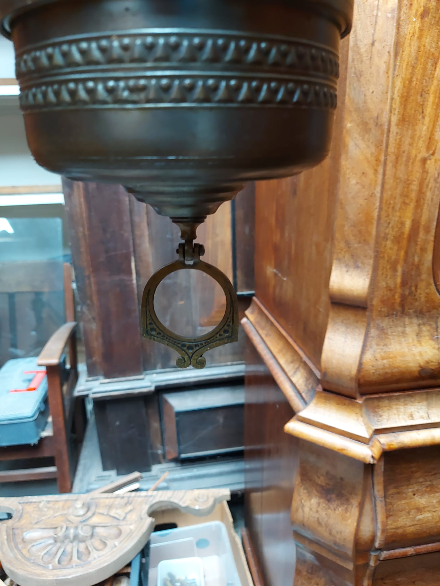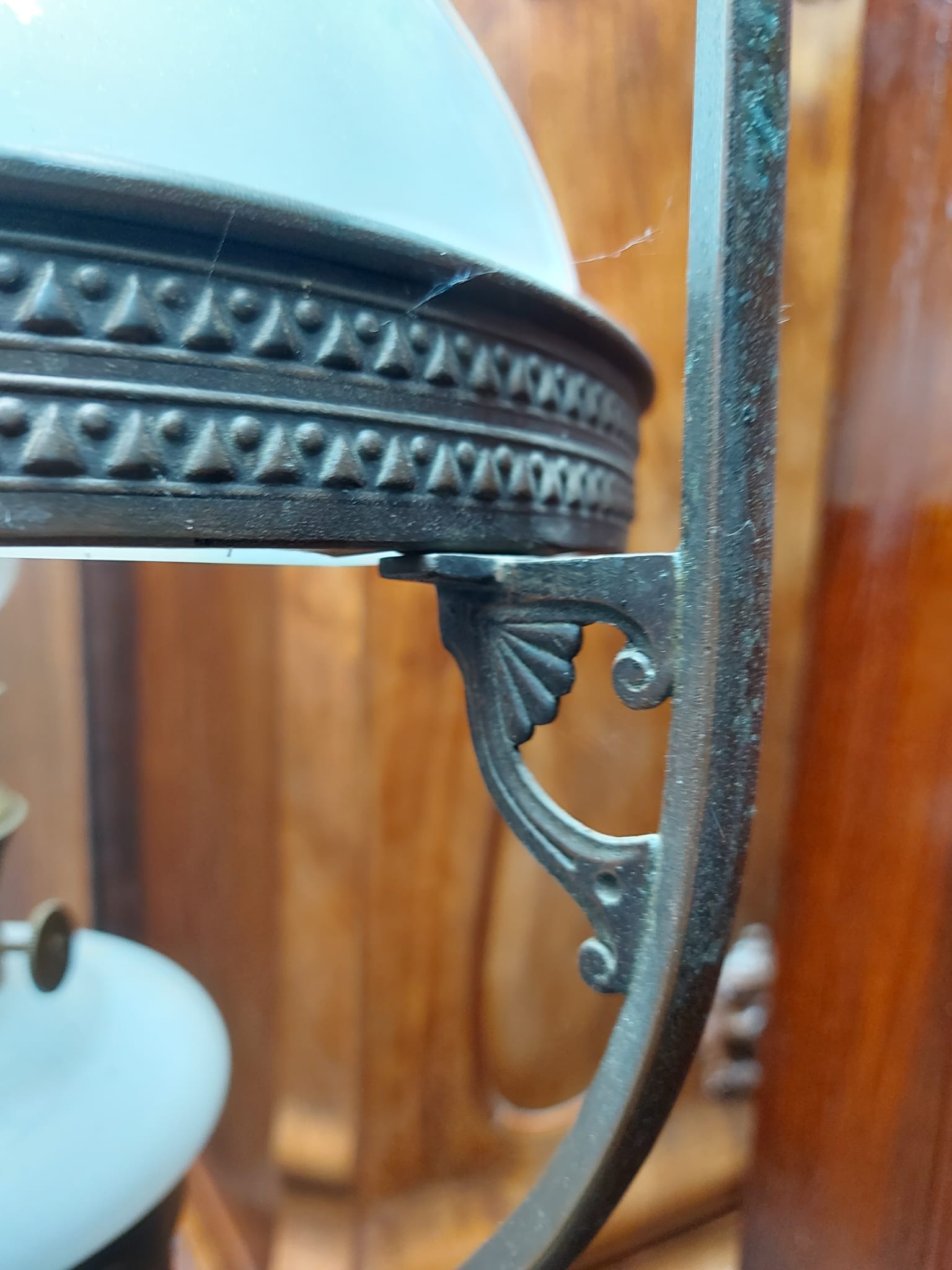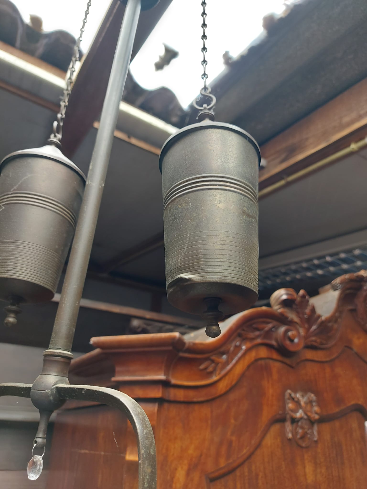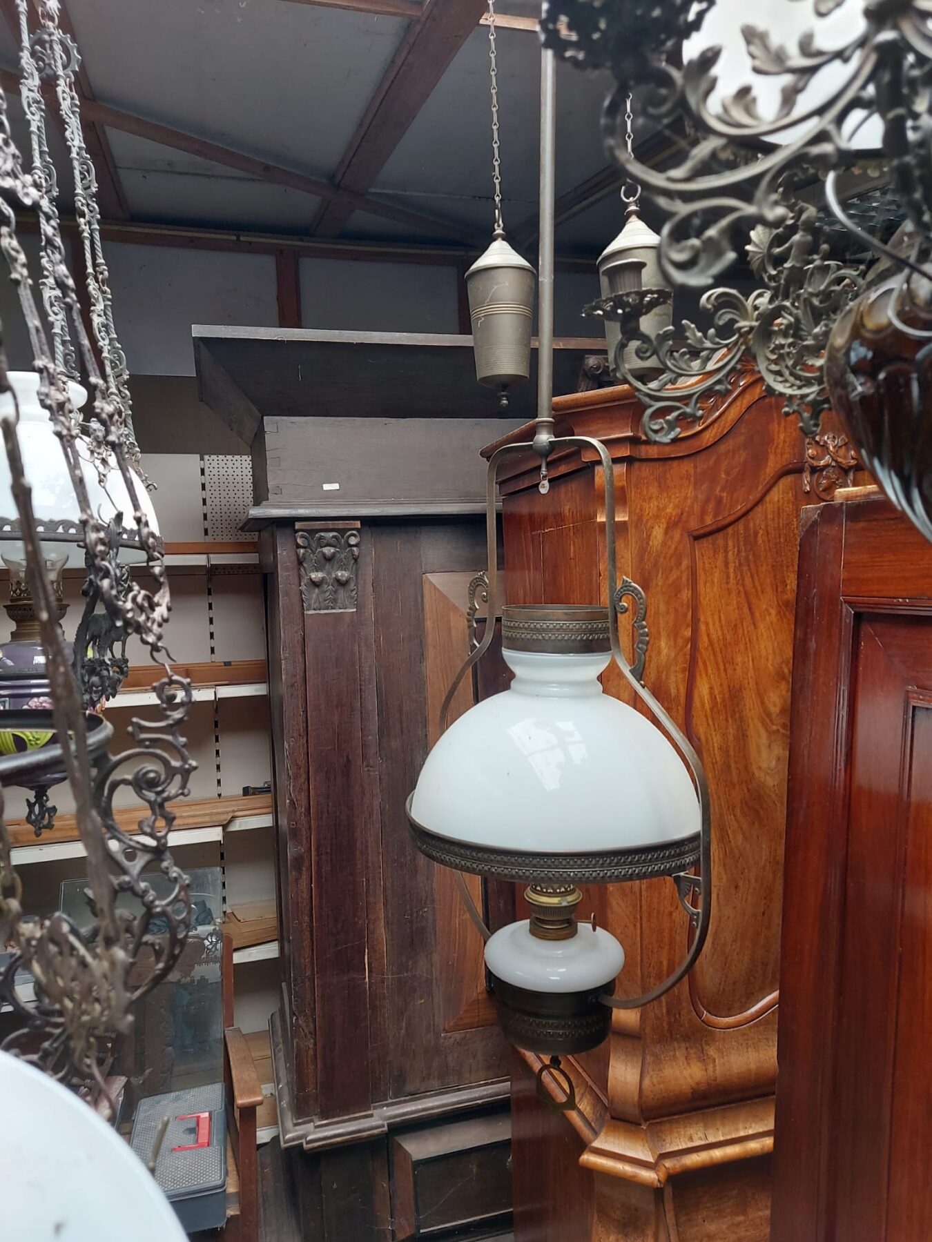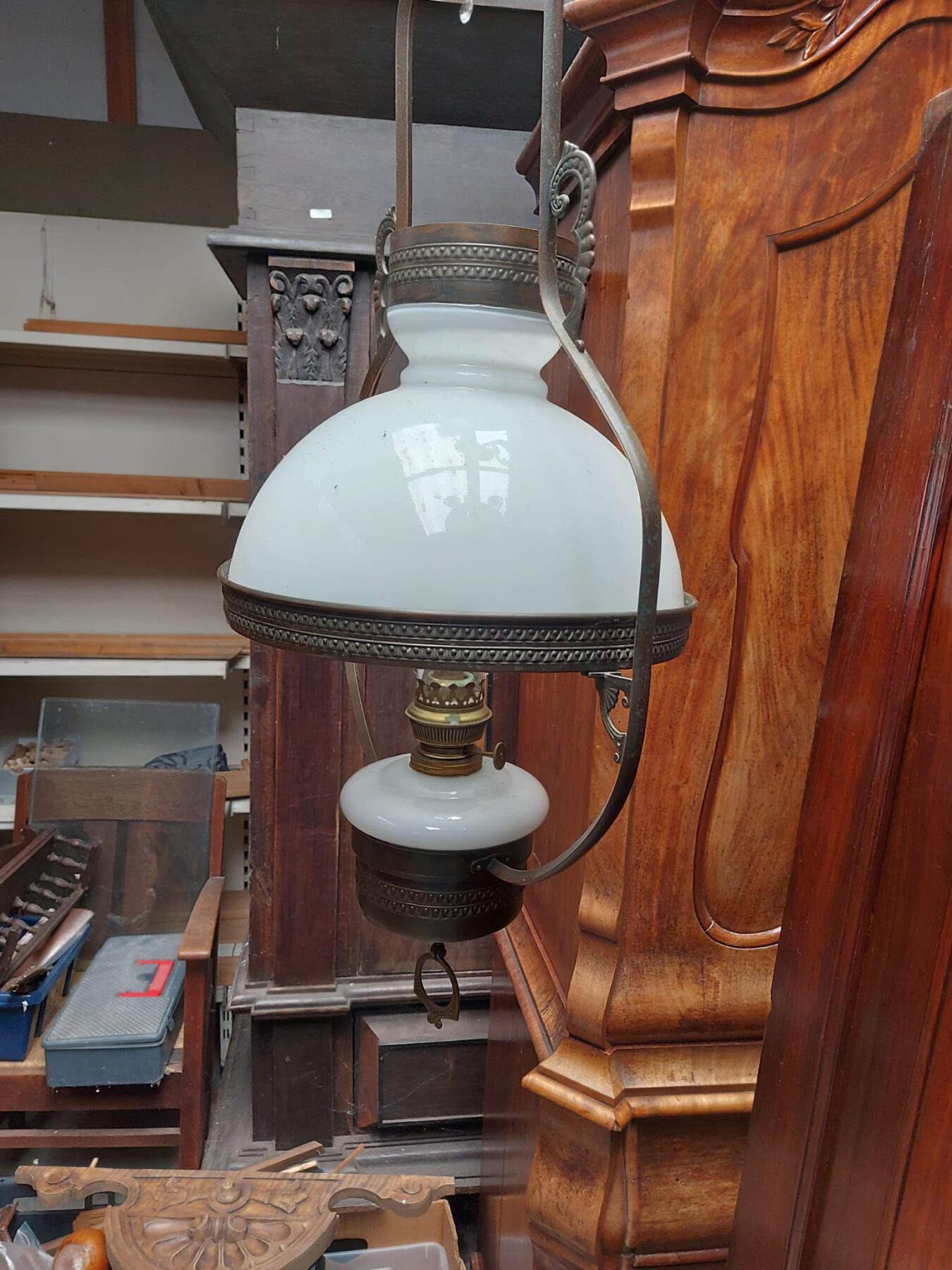 fraaie hangende olielamp die in hoogte te verstellen is.