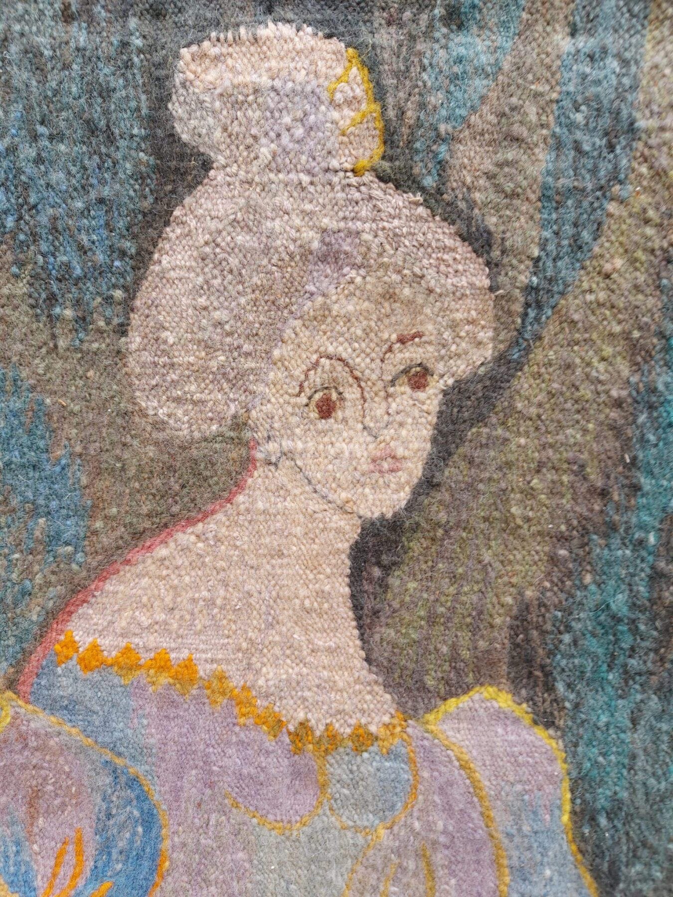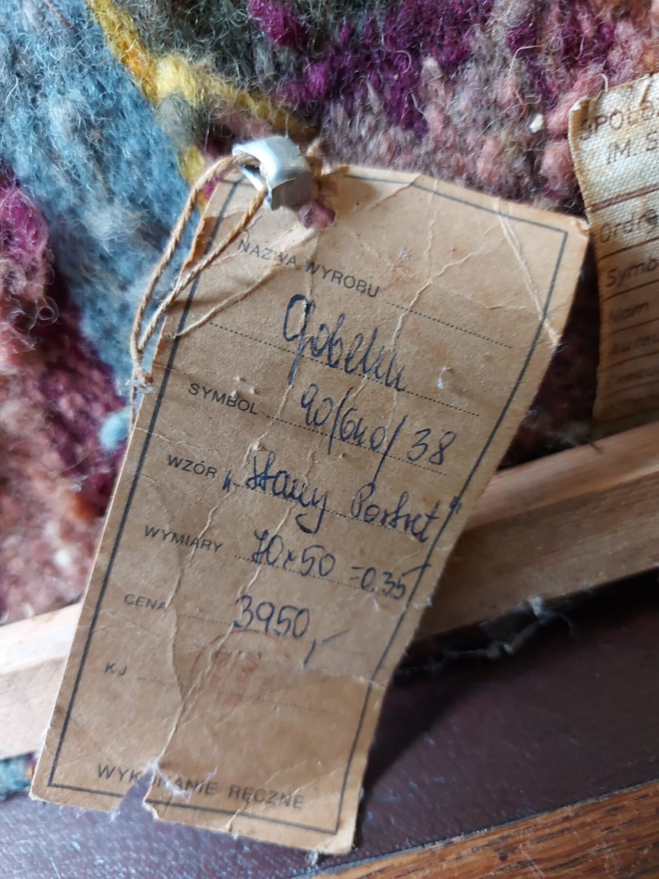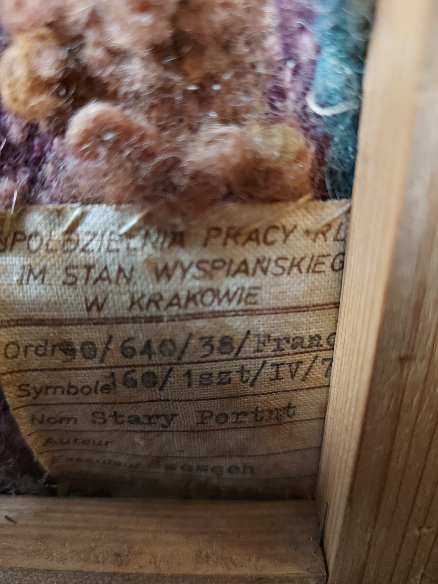 Gobelin met de titel Stary Portrut. Voorstellende de afbeelding van een vrouw gemaakt door een Poolse kunstenaar.